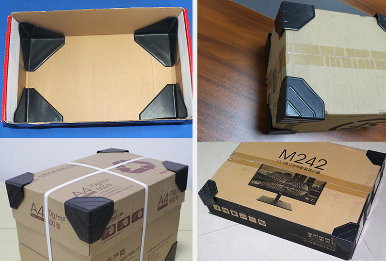 काँच, लेन्स, बाथरूम वेयर, एक्रिलिक, पीवीसी प्यानल, टाइल्स, फ्रेम, आल्मुनियम, काठ, र फर्निचर बोर्डहरू जस्ता ढुवानी वा ह्यान्डलिङको समयमा धेरै सामाग्रीहरू सुरक्षित गर्नका लागि तीन-पक्षीय प्लास्टिक कर्नर प्रोटेक्टर कार्टनहरूको लागि उपयुक्त छ।